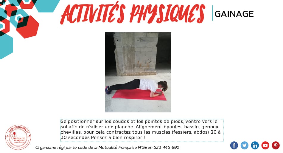 Une bonne posture c’est avant tout être aligné ! On ne le répétera jamais assez : pour éviter de se faire mal, il faut toujours commencer par bien se positionner. Garder le dos bien droit, garder les jambes et bras dans un axe parallèle, échauffez-vous et pensez à respirer ! La respiration permet aussi de détendre vos muscles. Une respiration profonde favorise l’apport d’oxygène dans le sang et vous aidera ainsi à améliorer vos mouvements. Pour vous aider nous avons sélectionné 3 exercices ! Mathilde, notre experte santé vous montre l’exemple !